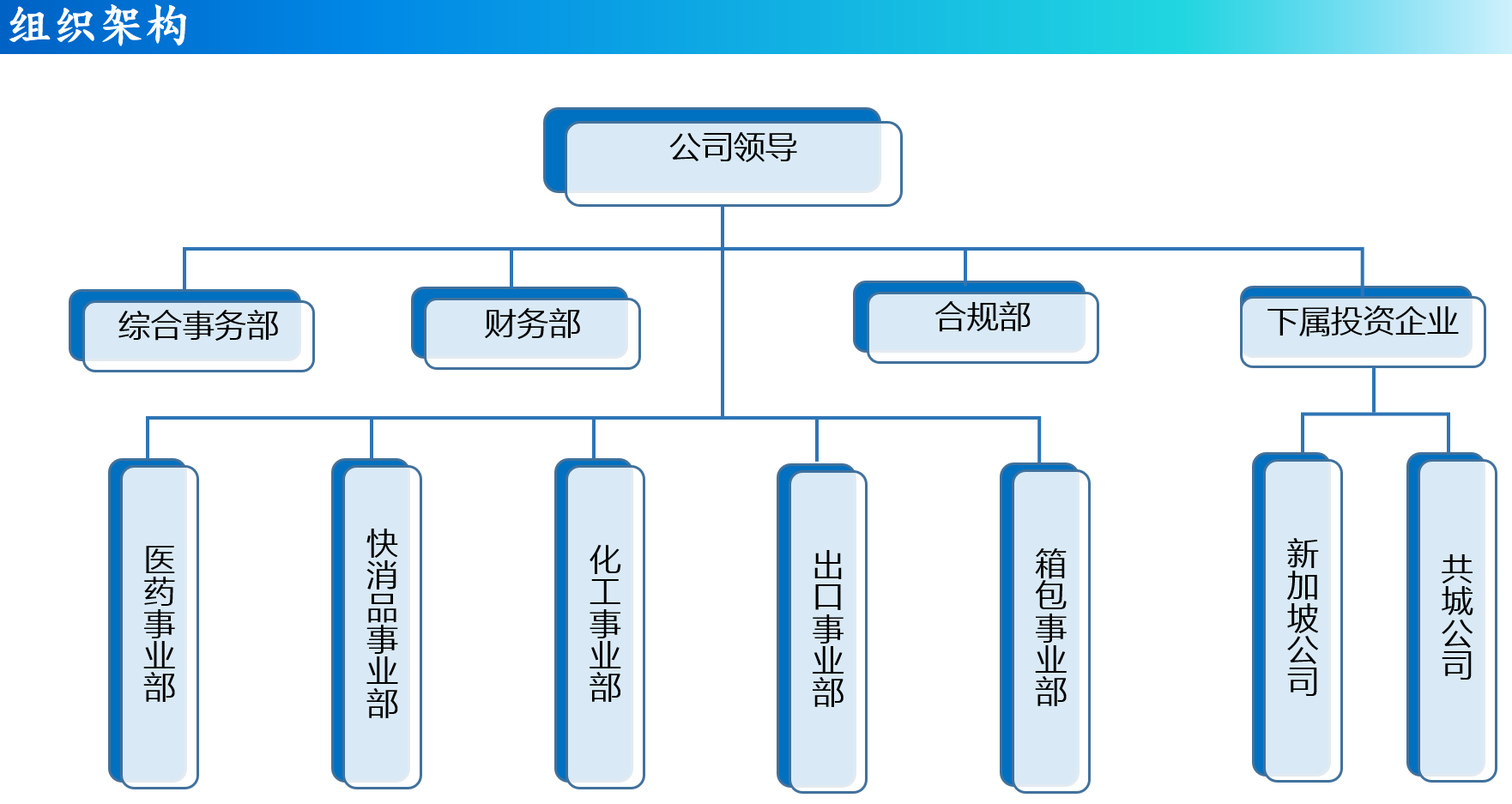 1992年10月,公司由上海市对外经济贸易委员会批准成立,成为上海医药工业行业中第一家具有进出口经营权的外贸企业。公司坚持特色经营,经营范围由原来的以医药产品为主打,逐步扩大到医药、化工、医疗器械、动物保健药、食品、化妆品等多项经营许可产品并举的进出口贸易。 |